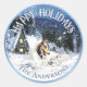 Este encantador pegatina redondo le da un toque mágico a sus sobres y regalos de vacaciones. El diseño muestra una escena de invierno inspirada en cuentos de hadas, con una colmena azul en la nieve junto a dos corderos, personalizados con tu nombre y una leyenda. — Este diseño también se ofrece con otros animales. Explore nuestras categorías de Pegatinas y colecciones de diseño para variantes de diseño y productos, o visite nuestra página de productos relacionada en petsdreamlands.com/stkr01a. Para solicitudes especiales, contacte con nosotros en Zazzle, Facebook o a través de nuestro sitio web. ¡Disfruta de diseñar y gracias por elegirnos!