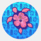 Pegatina Redonda Halcón honu hawaiano e hibiscus