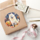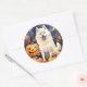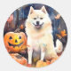 Pegatina Redonda Halloween American Akita con calabazas aterradoras