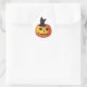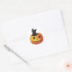Pegatina Redonda Halloween antiguo, gato negro lindo en una calabaz