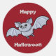 Un murciélago de clip-art con deseos de una Halloween Feliz es presentado en este pegatina. Es muy útil para enviar esa tarjeta especial de Halloween, para álbumes, decoración o truco o regalo.