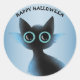 Pegatina Redonda Halloween Big Eyes Black Blue Evil Cat