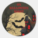 Halloween Black Red Haunted House Bat Full Moon Classic Pegatina redondo. Diseño único, bonito y elegante. Fácil de personalizar. El estilo de letra, el tamaño y los colores se pueden cambiar. Los elementos coincidentes están disponibles.