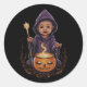 Pegatina Redonda Halloween, bruja 6 bebé, bruja divertida, diversió