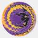 Pegatina Redonda Halloween bruja voladora magia hechizo texto de no