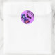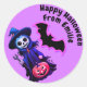 Pegatina Redonda Halloween con espantapájaros morados y murciélagos
