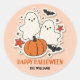 Adorable pegatina de Halloween con adorables fantasmas, calabazas y murciélagos. Perfecto para la decoración fiesta, el envoltorio de regalos o el periodismo. (Obra de arte generada por IA)