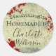 Esta etiqueta de pegatina personalizado presenta un temible tema de Halloween. El fondo presenta un diseño de hormigón espeluznante y grisáceo con manchas de sangre colocadas alrededor de los bordes. La frase "Hecha a mano de manera inquietante" se imprime sobre un nombre de ejemplo. Puede personalizar el pegatina para incluir su propio nombre y texto personalizado. Es perfecto para etiquetar tus dulces caseros o hechos a mano en esta Halloween.