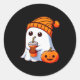 Pegatina Redonda Halloween Costume Ghost Drinking Pumpkin Men Women