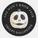 Pegatinas de Halloween mostrando una espeluznante jota gótica de calabaza con la frase: no conoces a jack.