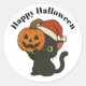 ¡Un pegatina de Halloween verdaderamente único y encantador! Este diseño presenta un adorable gato negro de estilo retro con ojos verdes brillantes, sosteniendo una clásica lámpara de jack-o' tallada. Para añadir un giro extraño, el gatito lleva puesto un gorra de Santa Claus, ¡lo que lo convierte en un lugar perfecto para las fiestas de aquellos que empiezan a celebrarlo temprano! El texto dice 'Feliz Halloween' con una letra negrita y curvada. Ideal para sellar bolsas de regalo, decorar laptops o añadir un toque divertido y vintage a su correo de vacaciones.