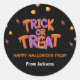 El pegatina de Halloween Trick o Treat Candy Corn Trick or Treat Classic Round Pegatina o Treat Candy Corn Halloween presenta un divertido tipo de cepillo y bonitos ilustraciones de maíz dulce.