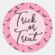 Pegatina Redonda Halloween De Trick O Trek Bats Rosados
