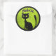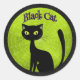 Halloween - Cute gato negro con "Gato negro" en el fondo de una telaraña en un marco redondo de araña