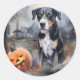 Pegatina Redonda Halloween Gran Suiza Con Calabazas Temerosas