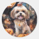 Pegatina Redonda Halloween Lhasa Apso Con Calabazas Temerosas
