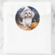 Pegatina Redonda Halloween Malti Tzu con calabazas aterradoras