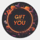 Añade un toque espeluznante a tus regalos de Halloween con este pegatina redondo clásico "Regalo por ti". Con letras atrevidas y elementos espeluznantes de Halloween como murciélagos, calabazas y telarañas, este pegatina es perfecto para sellar favores de fiesta, bolsos de truco o truco o cajas de regalos espeluznantes. ¡Haz que tus dulces de Halloween sean especiales con este diseño festivo y divertido!