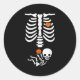 Pegatina Redonda Halloween Skeleton Baby Rib Cage Pregnant Pumpkin