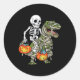 Pegatina Redonda Halloween Skeleton Riding Mummy Dinosaur T Rex Fun