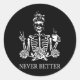 Pegatina Redonda Halloween Skeleton Skull Mujeres tomando café Nev
