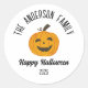 Agrega un toque festivo a tus celebraciones de Halloween. El diseño presenta una bonita decoración de Halloween con una cara de calabaza Naranja. ¡Esto es perfecto para bendecir a tus amigos por fiestas de Halloween y bolsas de regalo! ¿El punto fuerte? ¡Un nombre familiar personalizado! Añada el nombre de su familia al diseño, como "La familia Smith", creando una característica única y reflexiva de vacaciones que es verdaderamente suya.