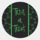 This is a stylish halloween "trick or treat" typography design. It is in festive black and green with a handwritten style font. It's perfect for halloween and perfect for trick or treat, party favor or envelope seals. If you want to, you can change the "Trick or Treat" text, by typing your own message into the personalize this text box (there's a return/ enter after each word and the design works best with a similar number of characters). Check out the design editing tool to change the color or font. If you need help with personalization, or for a custom design, contact me via zazzle chat or email: ursuladawnmoon@gmail.com