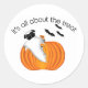 Pegatina Redonda Halloween Volando Fantasma Gracioso Diciendo Calab