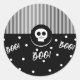 Pegatina Redonda Halloween Whimsical Boo Skull Fiesta Blanco y Negr