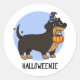 Pegatina Redonda Halloweenie Funny Sausage Dog Pun