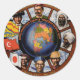 Poster de la Línea de Hamburgo de la Vieja América que incluye una rueda de barco, un mapa de ruta mundial, retratos multiculturales y banderas nacionales para los países a los que se presta servicio en su crucero mundial de 1905