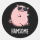 Pegatina Redonda Hamsome Funny Pig Pun Dark BG