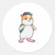 Pegatina Redonda Hámster como estudiante con mochila y gorra