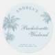 Stylish dusty blue bachelorette sticker featuring a hand drawn palm tree and minimalist coastal design. Perfect for beach weekends, tropical getaways, or destination parties with a relaxed modern vibe. Use it on favor bags, gift boxes, or party décor to complete your theme. A beautiful way to add a touch of coastal charm to your celebration or weekend adventure.