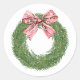 Hand Painted Winter Pine Wreath Striped Red Bow Christmas Classic Round Sticker - Send your Merry Christmas and holiday wishes to friends and family with this simple, elegant hand painted Christmas sticker. Featuring a hand-painted simple winter pine wreath with striped coquette red bow.