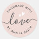 Pegatina Redonda Handmade with love hearts name light blush pink
