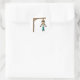 Hangman muestra un pegatino colgando de un andamio de madera. Diseño divertido celebrando el juego del hombre de la cama o posiblemente para pensamientos más oscuros.