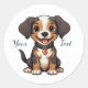 Pegatina Redonda Happy Animated Puppy Illustration Customizable