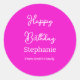 Pegatina Redonda Happy Birday Name Typography Modern Hot Pink
