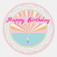 Pegatina Redonda Happy Birthday Fun Party Cup, Pink Rainbow