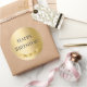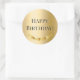 A faux gold looking background. Black text: Happy Birthday! Decorated with faux gold leaves.