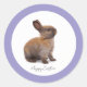 Süßes Kaninchenjungtier schaut erwartungsvoll auf weißem Untergrund.