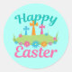 Pegatina Redonda Happy Easter Beautiful Religious Flowers Crosses