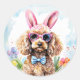 Pegatina Redonda Happy Easter Cute Bunny Poodle Watercolor Dog