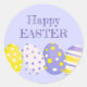 Pegatina Redonda Happy Easter Eggs Purple Background