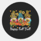 Pegatina Redonda Happy Fall Y'all Gnome Leopard Pumpkin Otoño