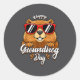 Pegatina Redonda Happy Groundhog Day Funny Groundhog Sungles Cute K