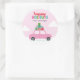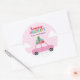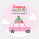 Pegatina Redonda Happy Holidays Pink Car with Gifts in Pastel Pink