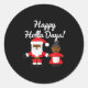 Pegatina Redonda Happy Holla Days Santa And Mrs Claus Black Christm
