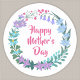 Pegatina Redonda Happy Mother's Day Floral Blue Pink Flower Wreath